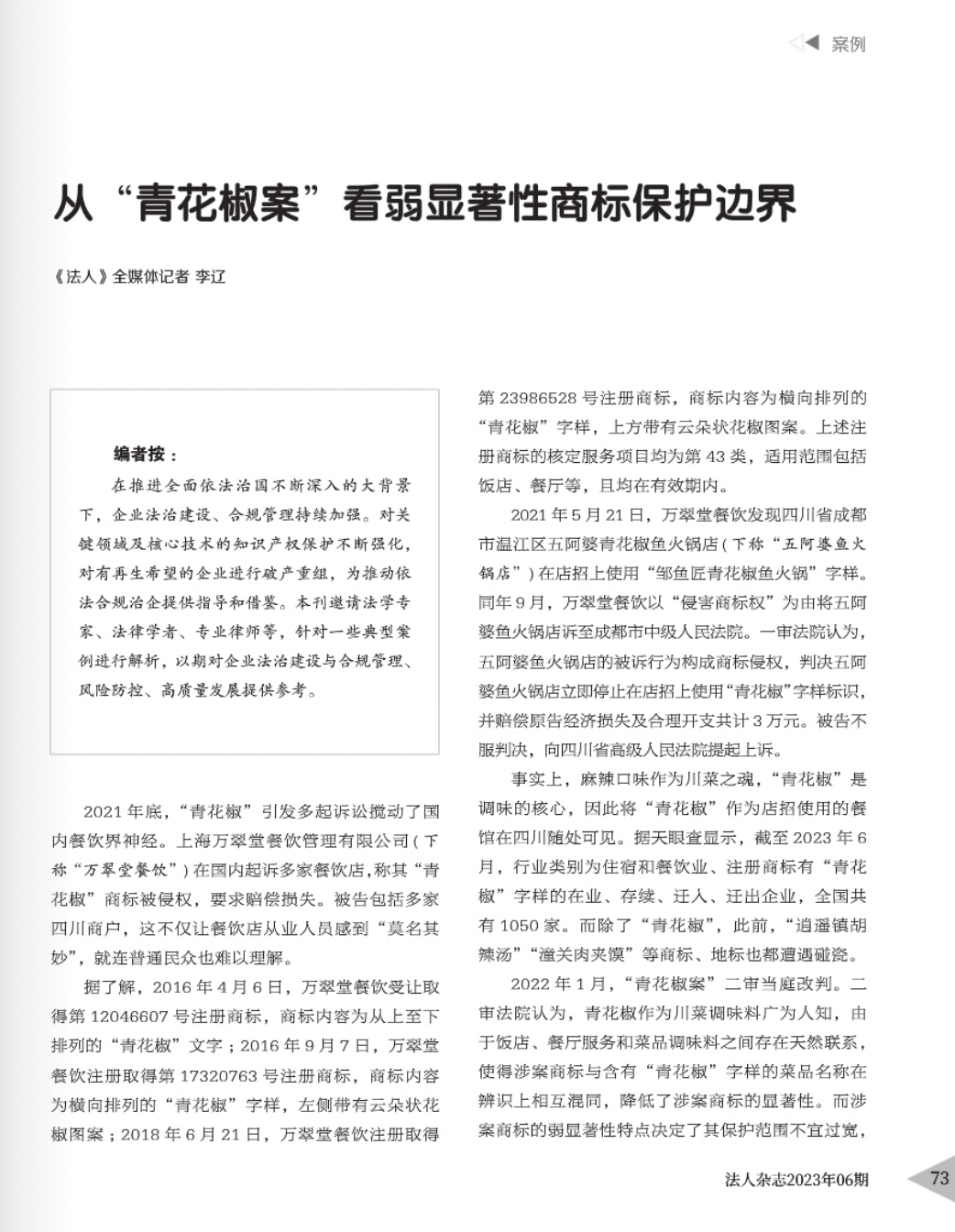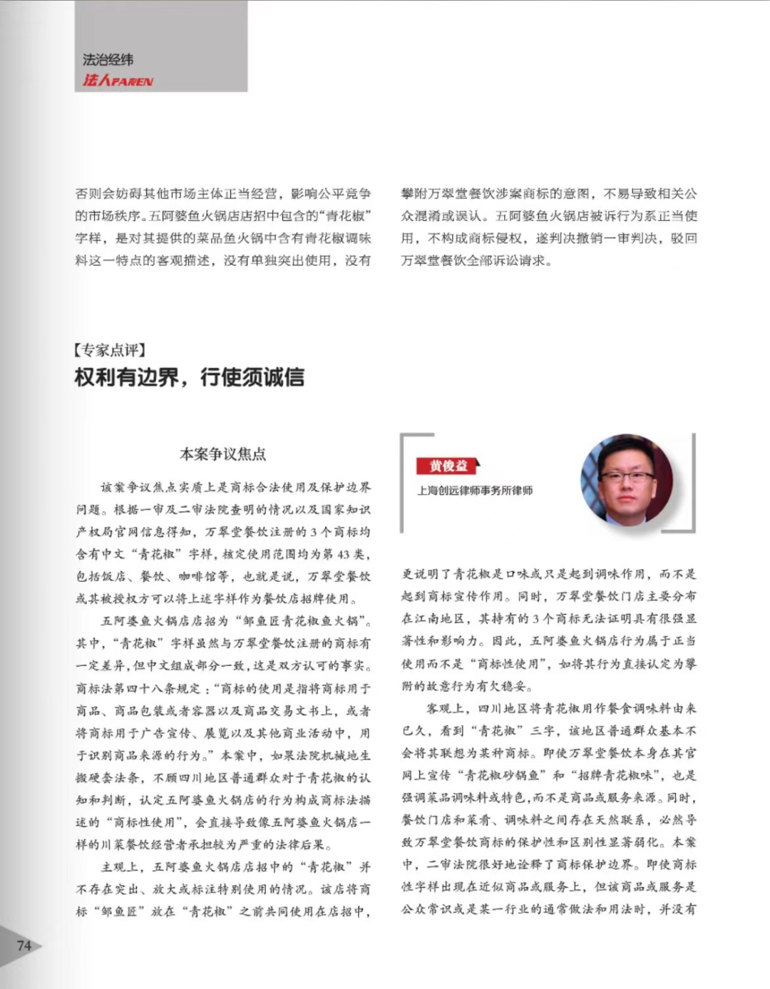 运城辉知简讯 | 辉知队黄俊益律师应“法治日报”旗下杂志邀请,就“青花椒”案发表专家点评