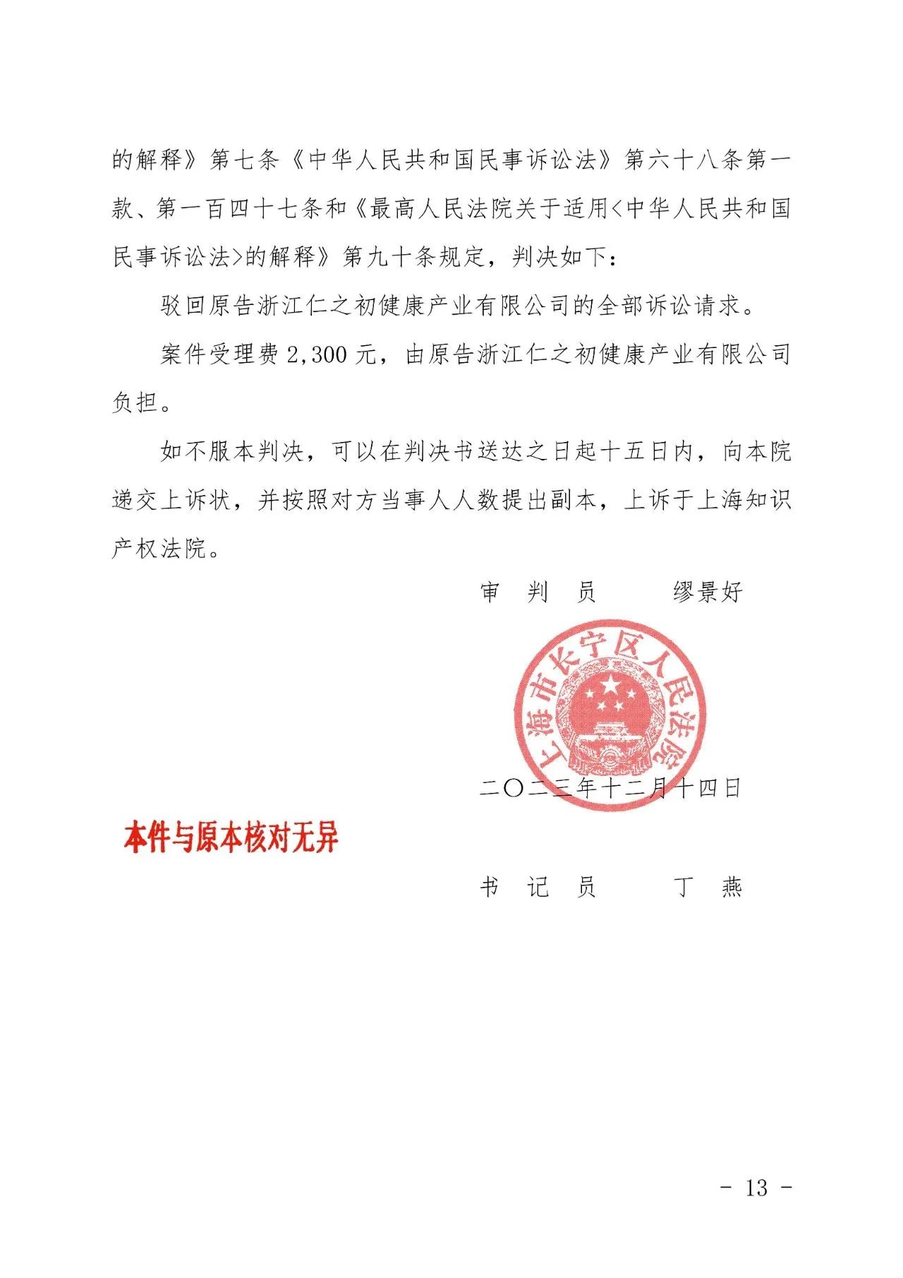 运城辉知胜诉佳讯 | “仁之初健康”著作权及不正当竞争纠纷案,法院:驳回全部诉讼请求!